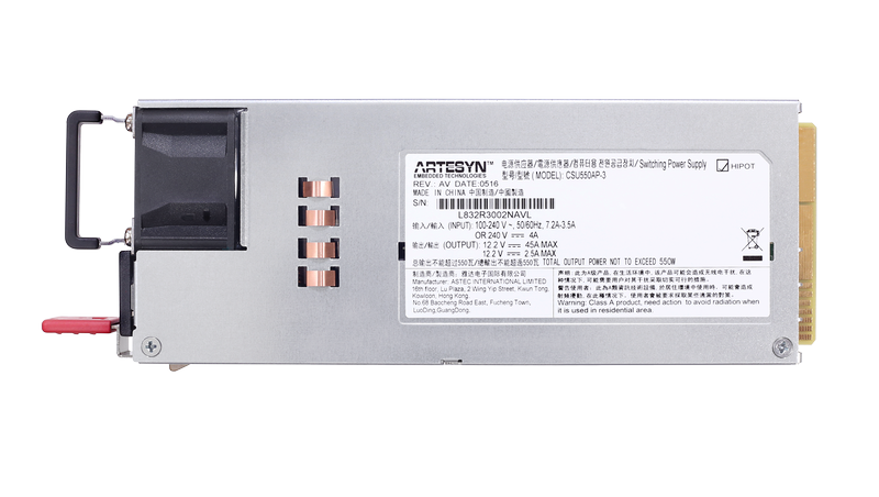 The CSU550AP power supply is housed in a 1U high rack-mount enclosure measuring just 2.89 x 7.28 inches (73.5 x 185.0 mm). This form factor is significantly narrower and shorter than that of similarly rated earlier-generation power supplies, freeing up valuable system space. This form factor conforms to the standard market's common redundant power supplies. The CSU550AP power supply is fully digital and compatible with Advanced Energy's universal PMBus® graphical user interface, allowing control via an integral I2C interface using the industry-standard PMBus communications protocol.