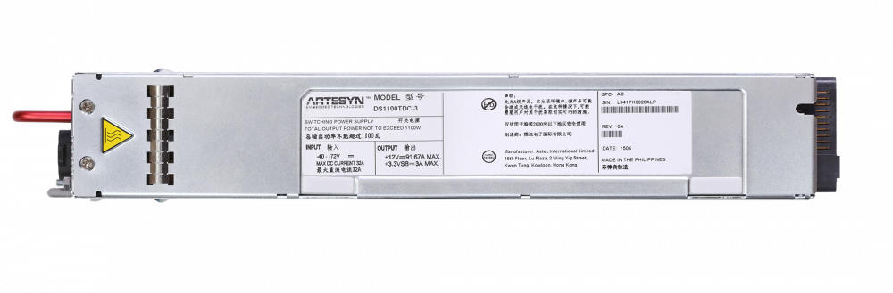The DS1100TDC series bulk front end DC-DC power supply accepts a wide range -40 to -72 VDC input and provides a main 12 V output plus a 3.3 V standby output. Housed in an industry standard 1U x 2.1 inch rack-mounting package and able to deliver 1100 W, the power supply is ideal for space-constrained applications. This series comes in two airflow versions – output-connector to input-connector and vice versa.