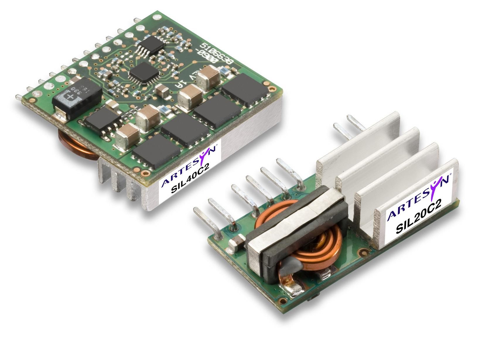 The SIL40C2 series is a high density open frame non-isolated converter for space sensitive applications. This model has a wide input range (4.5 to 13.8 VDC) and offers a wide 0.6 to 5 V output voltage range with 40 A load capability. An external resistor adjusts the output voltage from its pre-set value of 0.6 V to any value up to the 5 V maximum. Typical efficiencies for the models are 91% for the 12 V input version. The SIL40C2 series offers remote ON/OFF and over-current protection as standard.